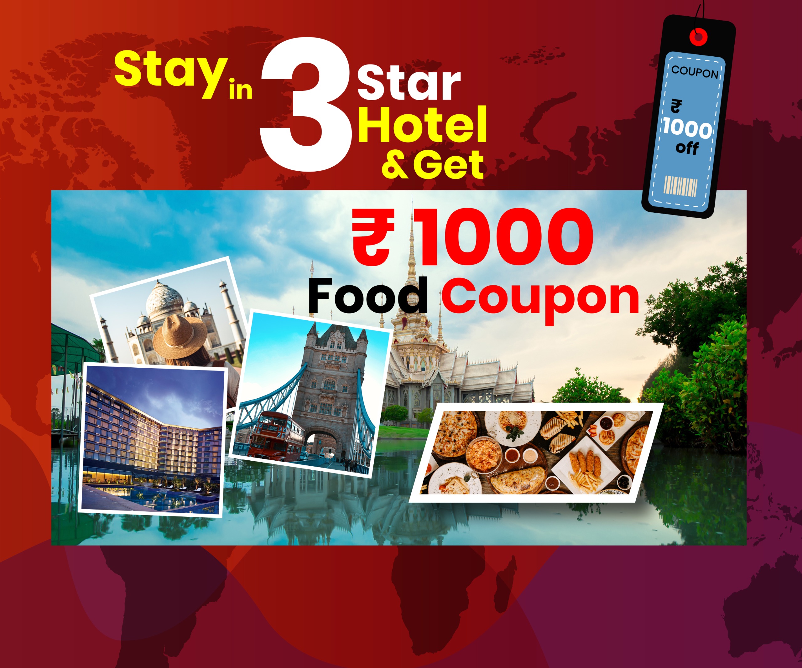 2N/3D Holiday, 3 star & above accomodation with 1000rs free food coupon
